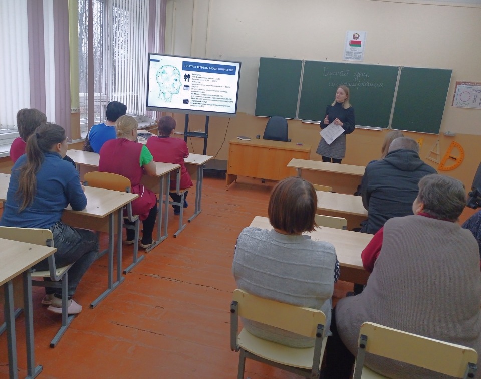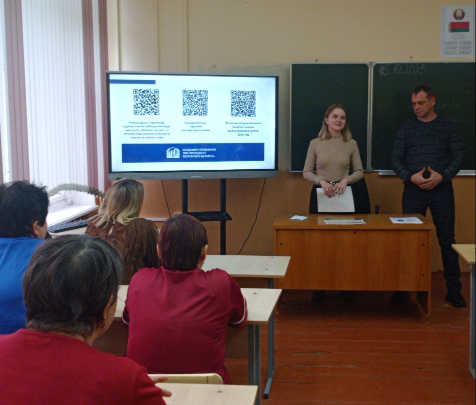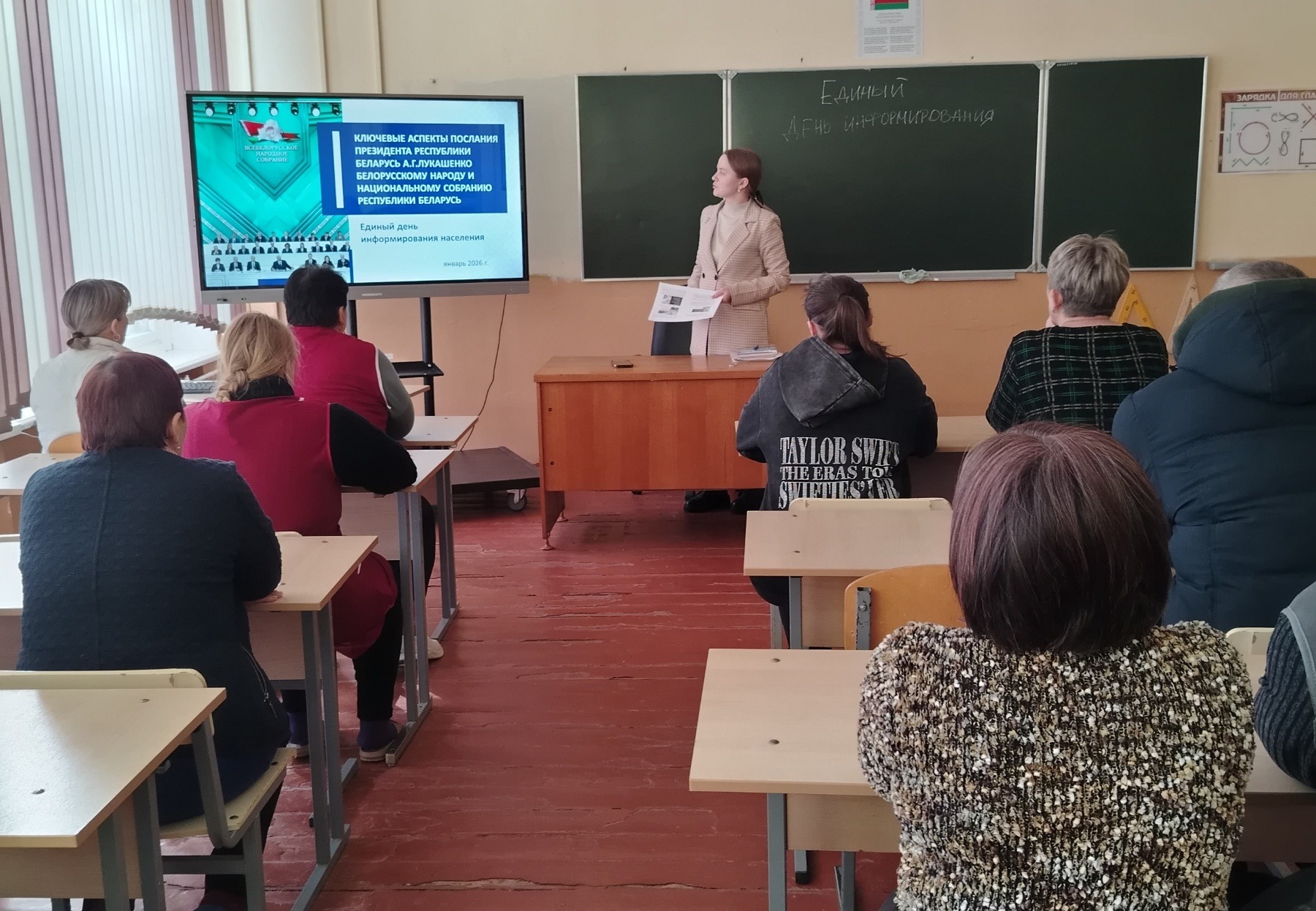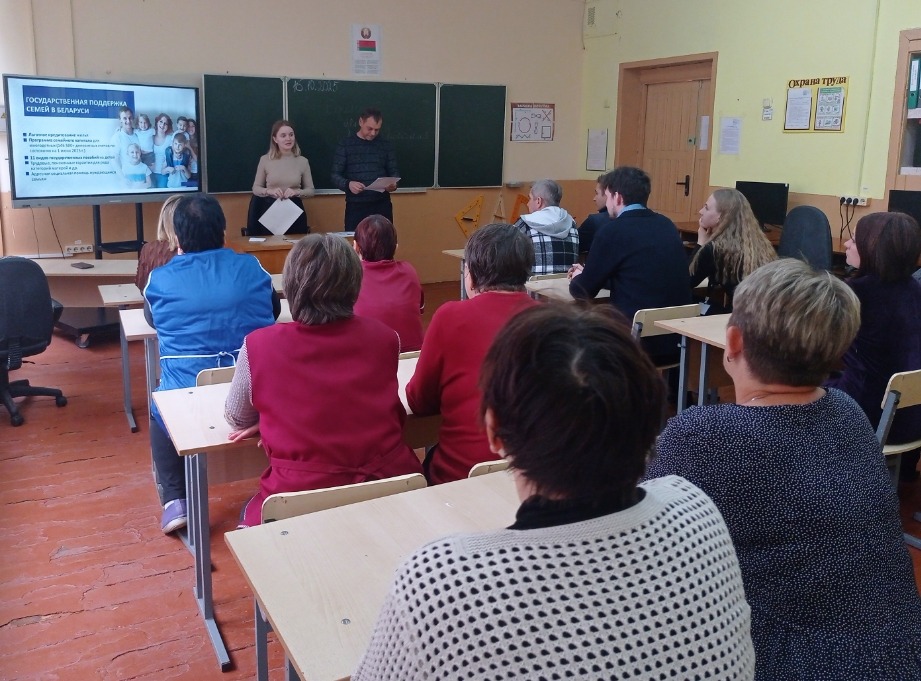 20 марта 2025 года прошел единый день информирования населения по теме: «КОНСТИТУЦИЯ РЕСПУБЛИКИ БЕЛАРУСЬ – ПРАВОВОЙ ФУНДАМЕНТ ЕДИНСТВА И ПРОЦВЕТАНИЯ БЕЛОРУССКОГО НАРОДА».Ильина Е.Н, заместитель директора, при рассмотрении вопроса подробно остановилась на социальных гарантах нашего государства для граждан.