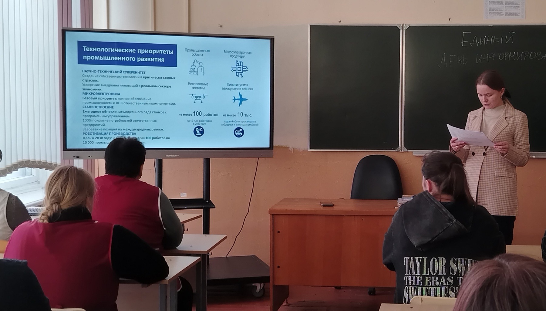 21.11.2024 в ходе единого дня информирования поговорили на тему :»Выборы Президента Республики Беларусь:будущее зависит от нас.» Директор школы Исакова А. С. отметила, что выборы-это политический инструмент, благодаря которому граждане наделяют властными полномочиями тех, кому доверяют и в ком видят своего лидера, способного обеспечить мир, развитие и благополучие. Участники обсудили достижения Главы государства, а также обсудили все стадии избирательной кампании.