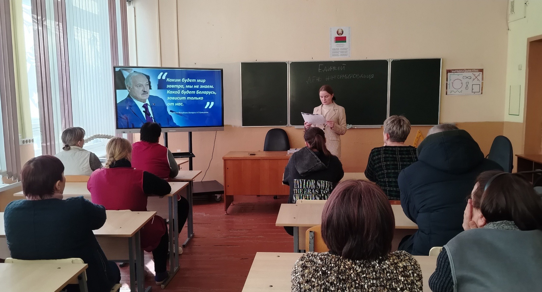 18 апреля 2024 года в Щедринской средней школе прошел единый день информирования населения по теме: «ВСЕ БЕЛОРУССКОЕ НАРОДНОЕ СОБРАНИИЕ – ГАРАНТ ПОЛИТИЧЕСКОЙ СТАБИЛЬНОСТИ И СУВЕРЕНИТЕТА».