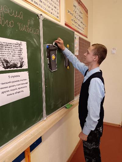 На втором этапе школьники углубили знания о земляках – выдающихся личностях региона, внесших вклад в его развитие. Отметили, как важно помнить, что не только значимые награды, звания и должности подтверждают, что вклад человека в развитие своей страны поистине ценен. Ежедневное усердие, забота о семье, активная жизненная позиция, преданность своему делу и Родине, а также приверженность моральным принципам – все это является отличительными чертами профессионалов своего дела.