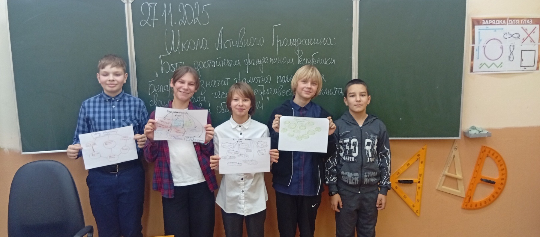 В ходе беседы ребята обсудили личные качества, необходимые для каждого гражданина Республики Беларусь, такие, как трудолюбие, честность, ответственность, любовь к Родине, подчеркнули значимость гражданской позиции каждого человека для развития страны. Школьники говорили о том, что патриотизм, любовь к родной земле, её природе, терпимость и миролюбие, уважение к людям других национальностей и разных конфессий, стремление к порядку и созидательному труду — лучшие черты национального характера белорусов.