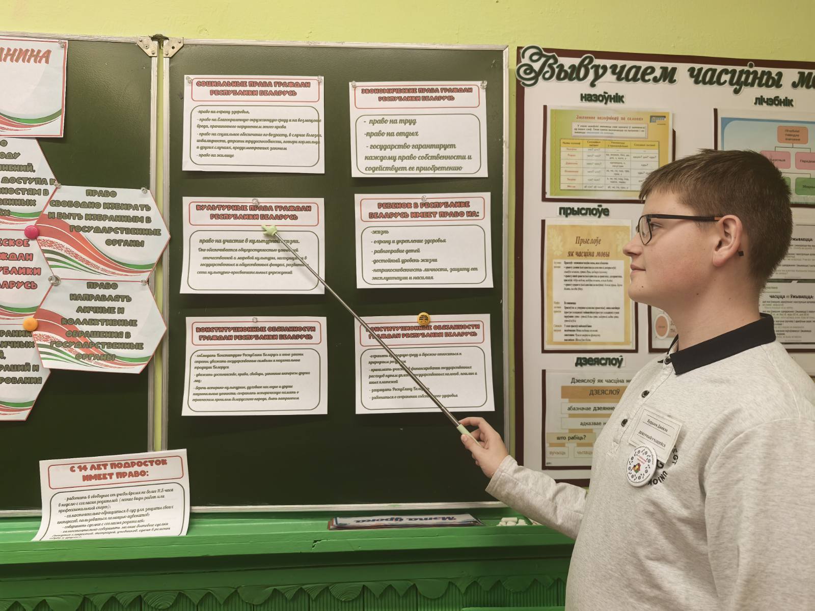 Учащиеся узнали об основных изменениях и дополнениях, внесенных в Конституцию по результатам республиканского референдума 2022 года, о правах и обязанностях Президента Республики Беларуси, о полномочиях Всебелорусского народного собрания. Ребята узнали за что награждают государственными наградами и государственными премиями Республики Беларусь.