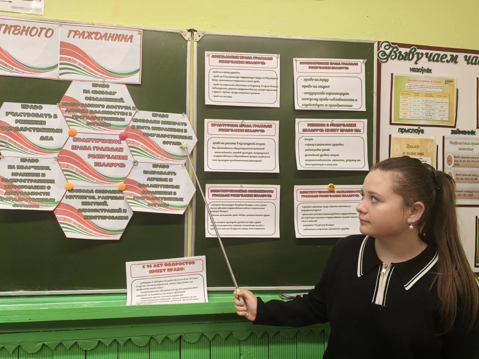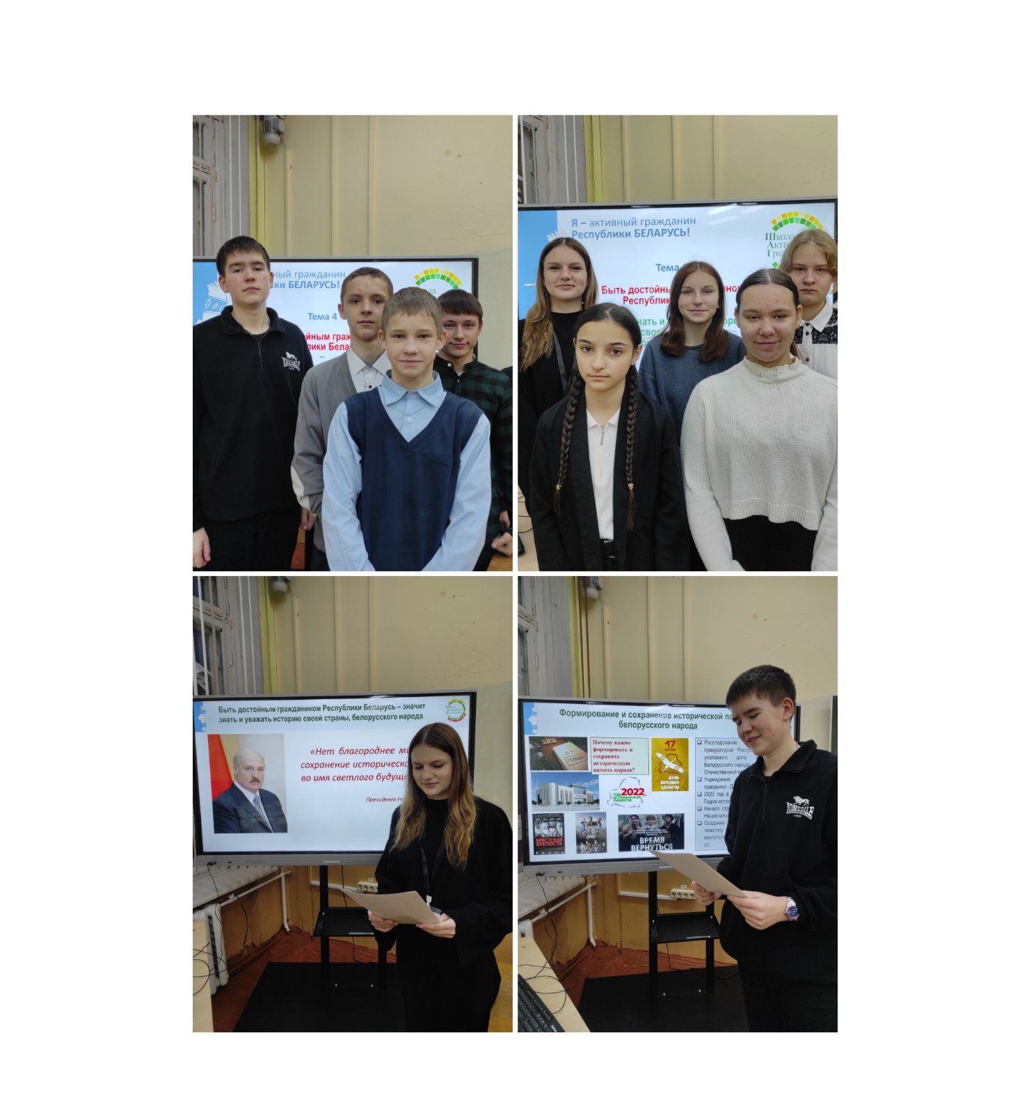 В начале выступления учащиеся были ознакомлены с концепцией республиканского информационно-образовательного проекта «Школа Активного Гражданина» в 2024/2025 учебном году. Было отмечено, что в этом учебном году реализация информационно-образовательного проекта «Школа Активного Гражданина» для VIII–XI классов будет продолжена под девизом «Время выбрало нас, молодежь выбирает Беларусь!».