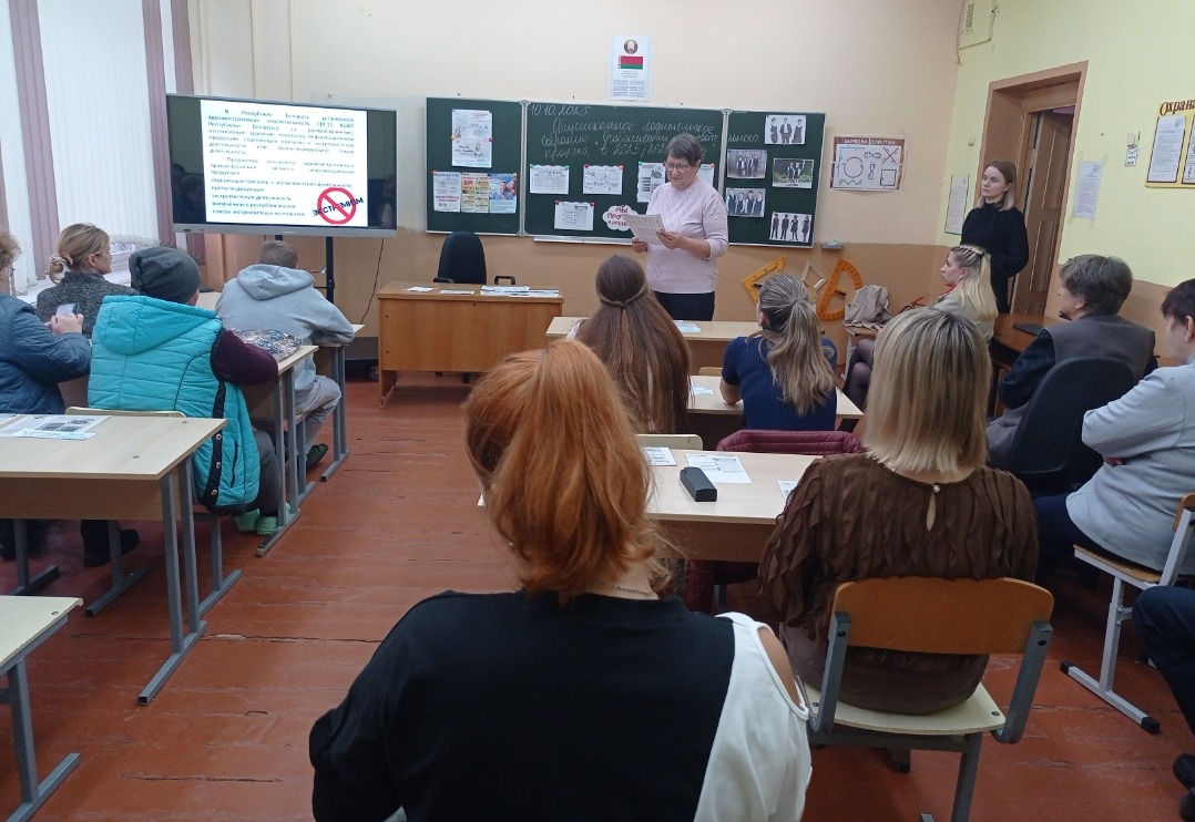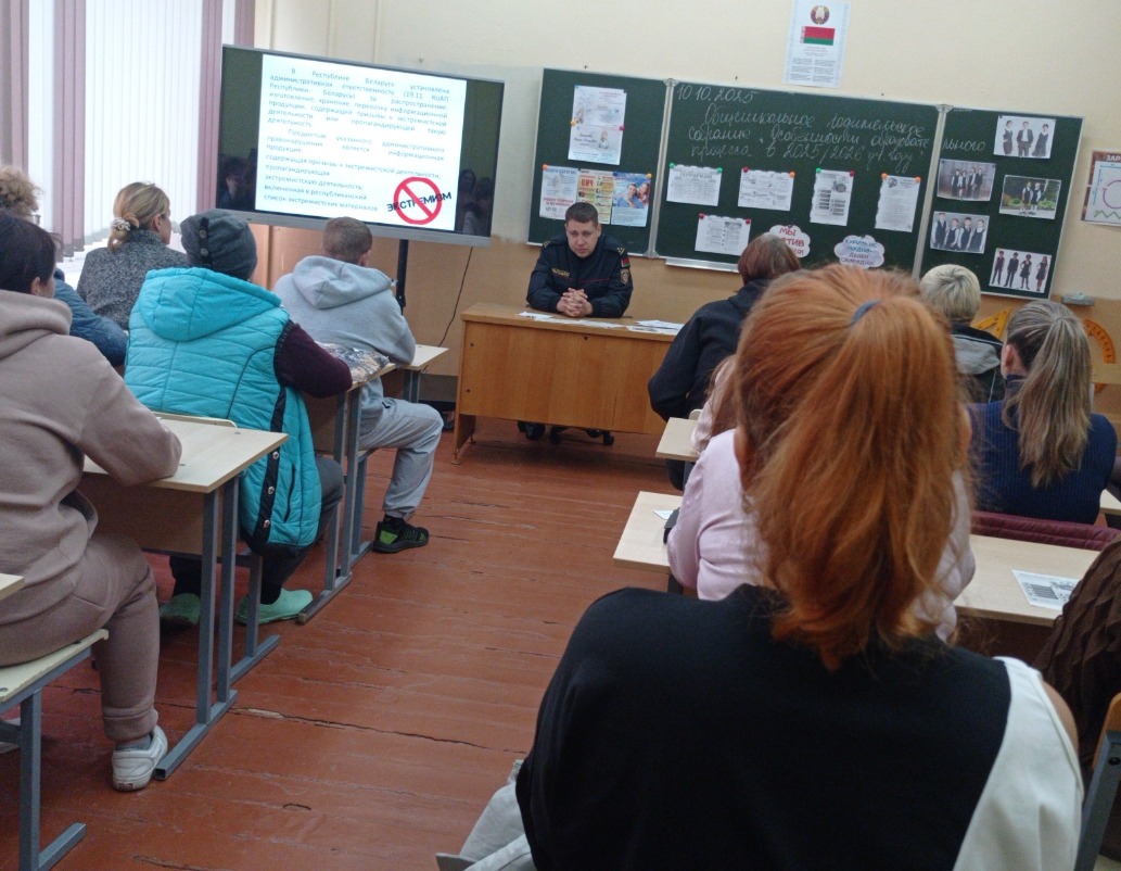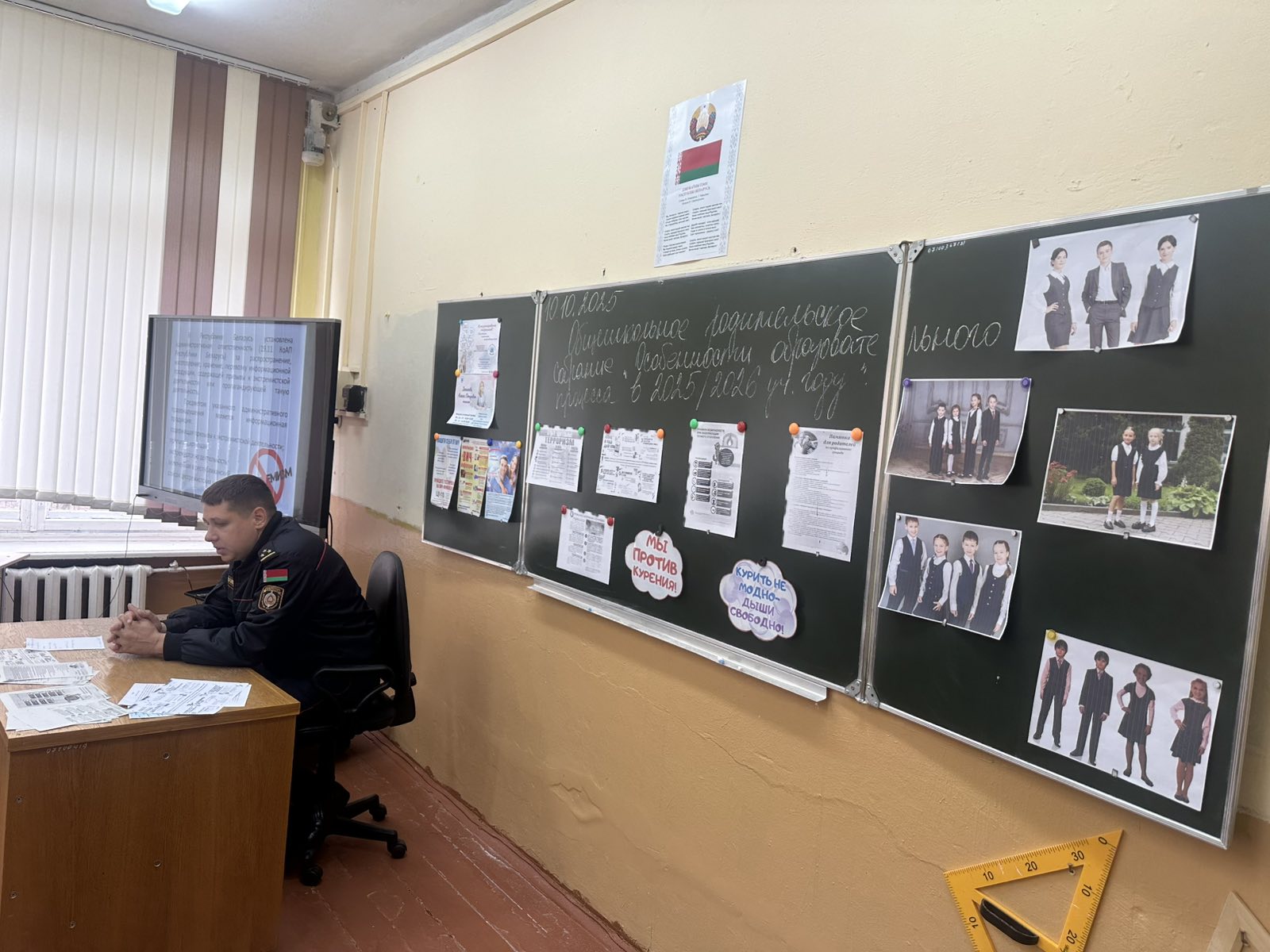 Участковый инспектор ИДН Котиков Сергей Иванович выступил с докладом по профилактике правонарушений среди несовершеннолетних. Его выступление сопровождалось показом видеороликов, демонстрирующих типичные ошибки поведения подростков в общественных местах и на дороге.